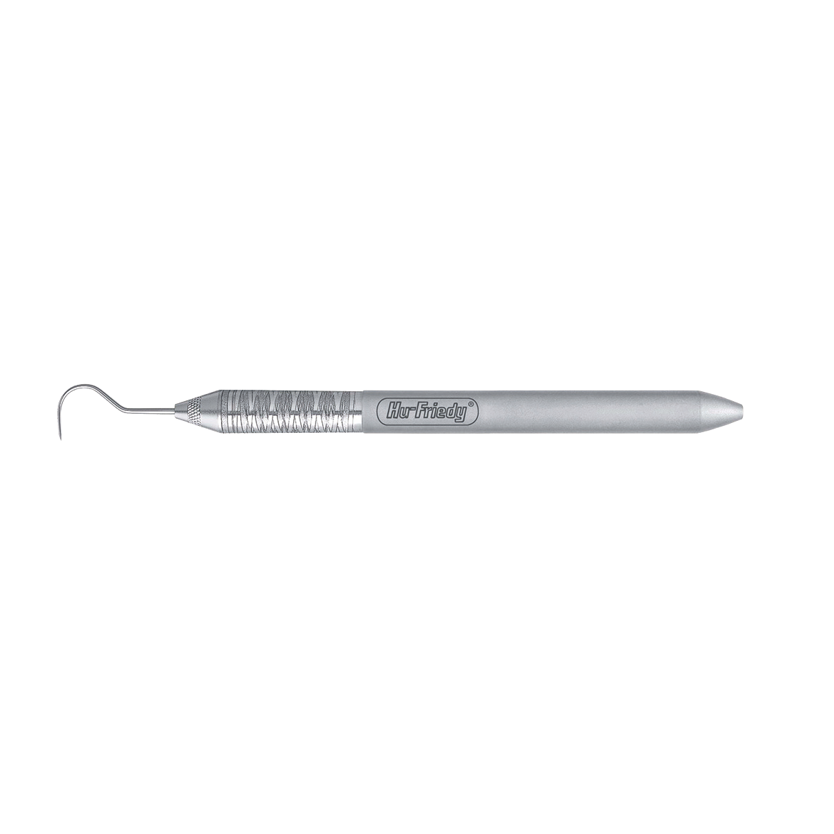 Shepherd's Hook Explorer used for caries and calculus detection, exploration of pocket characteristics, furcations and restorations.