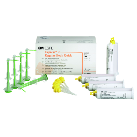 VPS impression material designed for both the 1-step and 2-step impression techniques. Suggested applications include crown and bridge impressions, inlay and onlay impressions, and fast-setting 'quick' products for 1- or 2-units. Helps the user to achieve impression accuracy and a great fit of the final restoration. Great detail reproduction through superior hydrophilicity and flow behaviour. High toughness reduces likelihood of tear when stretched upon removal from the mouth. Reduced chance of costly remakes due to almost 100% recovery from deformation. For use with the Garant Dispenser 1:1 / 2:1. Pack includes Regular Body Quick Cartridges 50ml x 4, Garant Mixing Tips (Yellow) x 5, and Instructions for Use.
