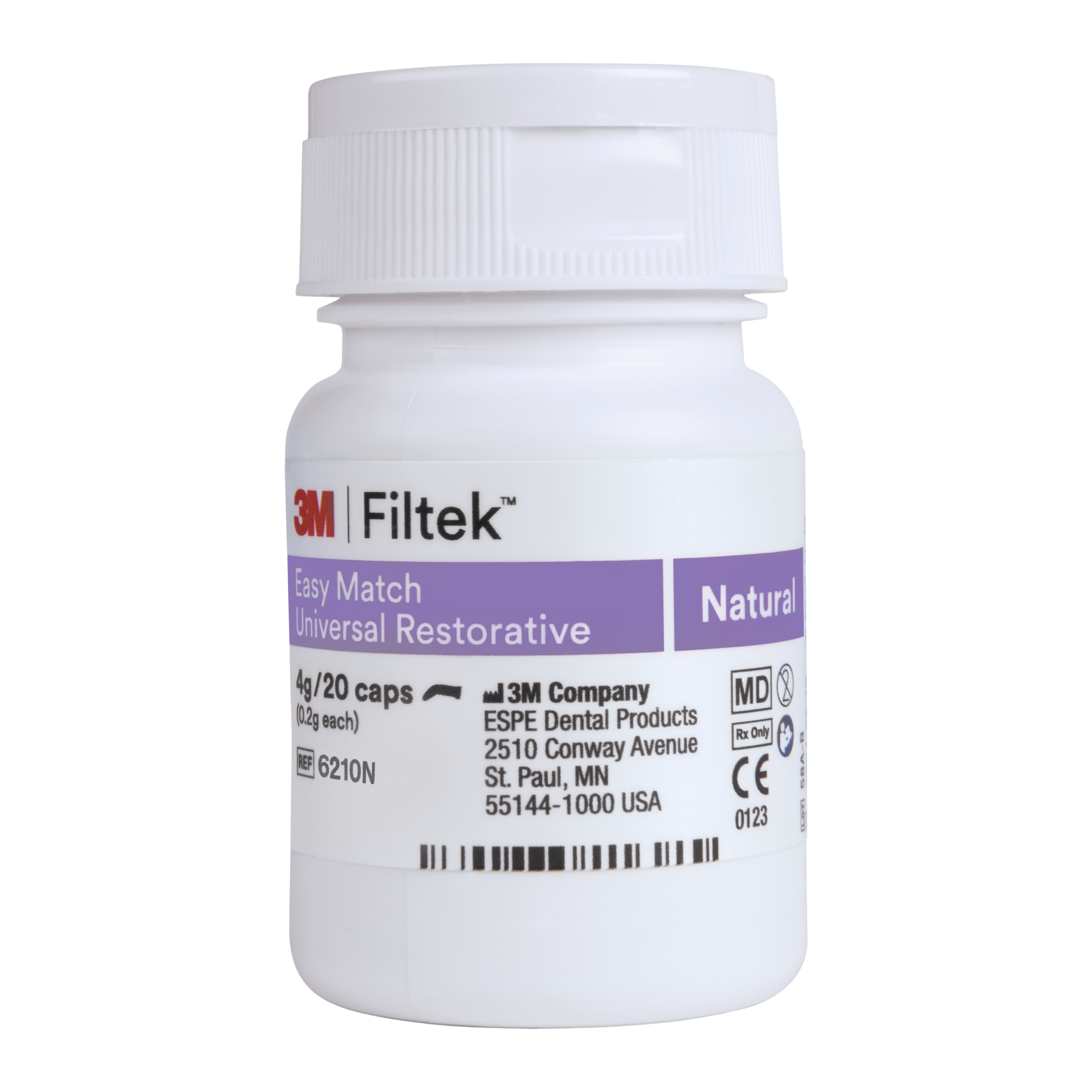 Universal restorative designed to simplify day-to-day dental restorations with intuitive shade selection, naturally adaptive opacity, and reduced inventory. 3-shade system matches the classical VITA shade guide and is designed to simply and intuitively deliver an excellent shade match for most cases. Enamel-like translucency on the bevel and incisal edge. Excellent polish retention, wear resistance and strength. Firm handling. Featuring the same nanotechnology behind 3M dental restoratives. No blocker is needed to mask the darkness of the oral cavity in anterior restorations.