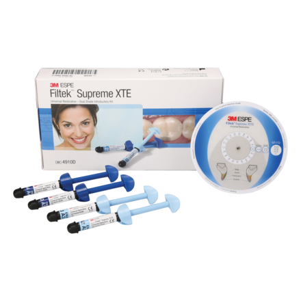 Universal restorative which delivers excellent polish retention, exceptional handling and outstanding strength. Suggested applications include direct anterior and posterior restorations (including occlusal surfaces); core build-ups; splinting; and indirect restorations (including inlays, onlays and veneers). Fluorescent, radiopaque and opalescent resin material that enables clinicians to deliver dental fillings with unsurpassed aesthetic results. Offers uncompromising fracture toughness and outstanding strength for any restoration. Excellent polish retention for lasting shine. Superior wear resistance. Exceptional adaptation and handling. Easy-to-use shading system colour coded by opacity. Complete this premium restoration using the gold standard of adhesion with Scotchbond Universal Plus Adhesive. Kit includes Syringe 3g x 4 (Dentine Shades: A3, A4; Enamel Shades: A2, A3) Shade Selection Wheel and Technique Guides.