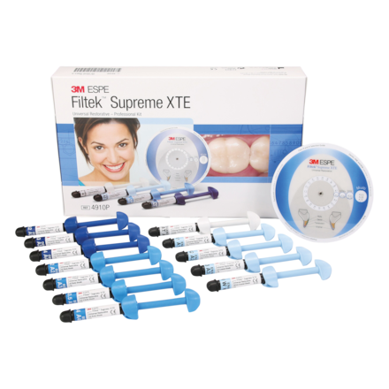 Universal restorative which delivers excellent polish retention, exceptional handling and outstanding strength. Suggested applications include direct anterior and posterior restorations (including occlusal surfaces); core build-ups; splinting; and indirect restorations (including inlays, onlays and veneers). Fluorescent, radiopaque and opalescent resin material that enables clinicians to deliver dental fillings with unsurpassed aesthetic results. Offers uncompromising fracture toughness and outstanding strength for any restoration. Excellent polish retention for lasting shine. Superior wear resistance. Exceptional adaptation and handling. Easy-to-use shading system colour coded by opacity. Complete this premium restoration using the gold standard of adhesion with Scotchbond Universal Plus Adhesive. Kit includes Syringe 3g x 12 (Dentine Shades: A2, A3, A4; Body Shades: A2, A3, A3.5, A4; Enamel Shades: A1, A2, A3, W; Translucent Shades: AT), Shade Selection Wheel and Technique Guides.
