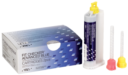 Vinyl polyether silicone material for checking pressure spots and fit accuracy of prosthetic work. Thin consistency and quick setting time. Transparent colours for easy evaluation of prothesis: blue for aesthetic restorations; white for metal-based restorations and dentures.