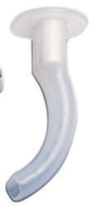 Airway device with with colour coded integral bite block. Rigid body to maintain patient airway. One-piece design with no separate inner bite block. Soft tip reduces risk of tissue damage. Softer second material reduces the potential for dental damage. Single use.