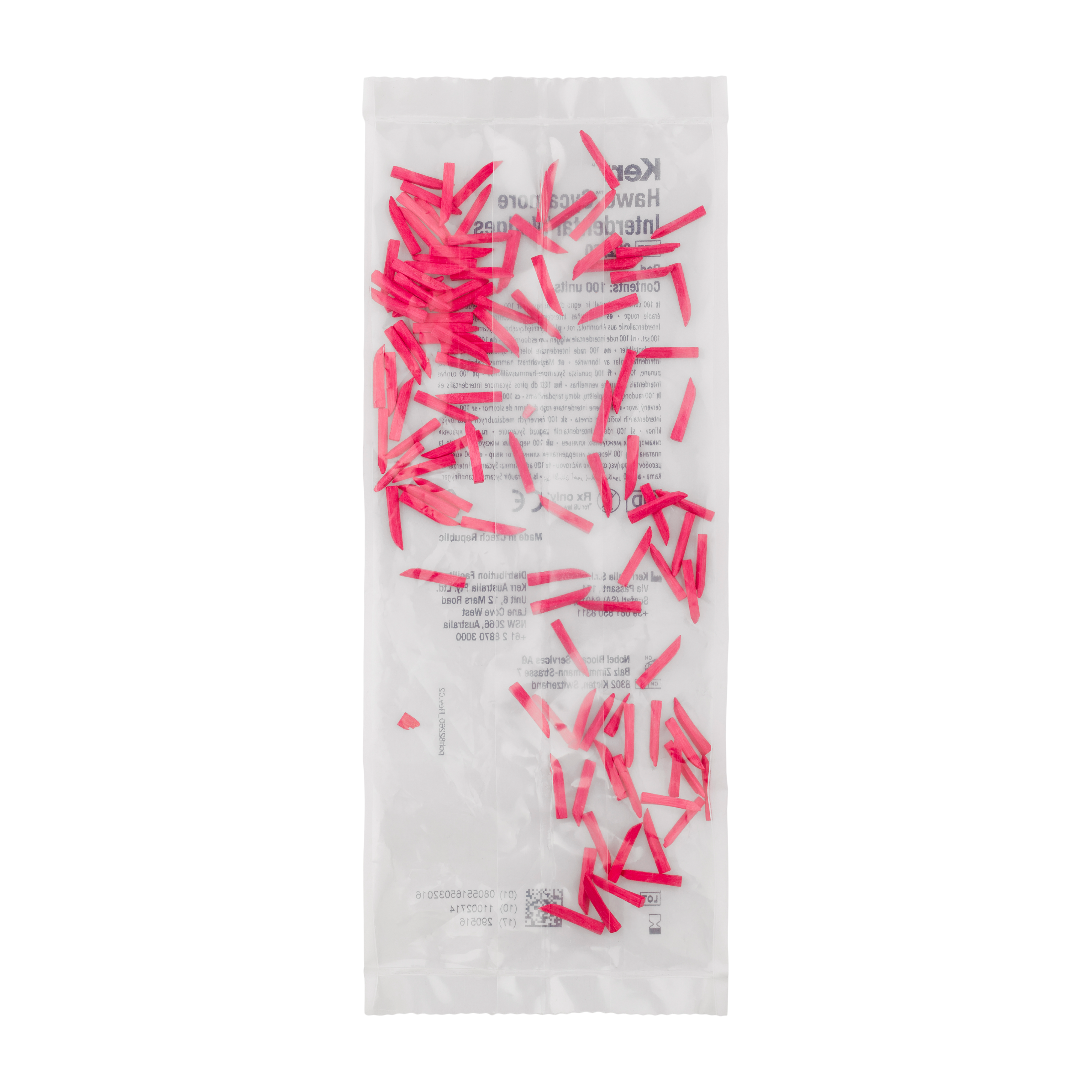 Colour coded interdental wedges with an anatomical optimal shape. The concave sides adapt perfectly to the interdental contour. The square end allows easy insertion of the wedge and the upturned tip prevents damage to the papillae. Wedges are made of splinter free sycamore wood, thus ensuring stability and compressibility.
