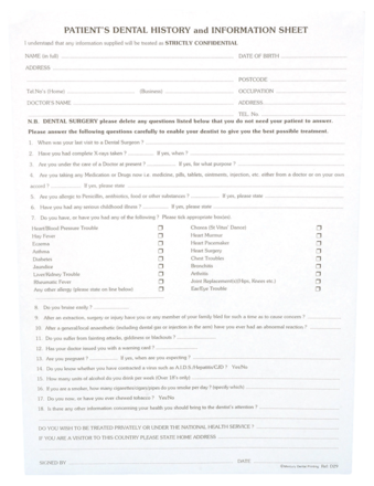 History & Information Sheet