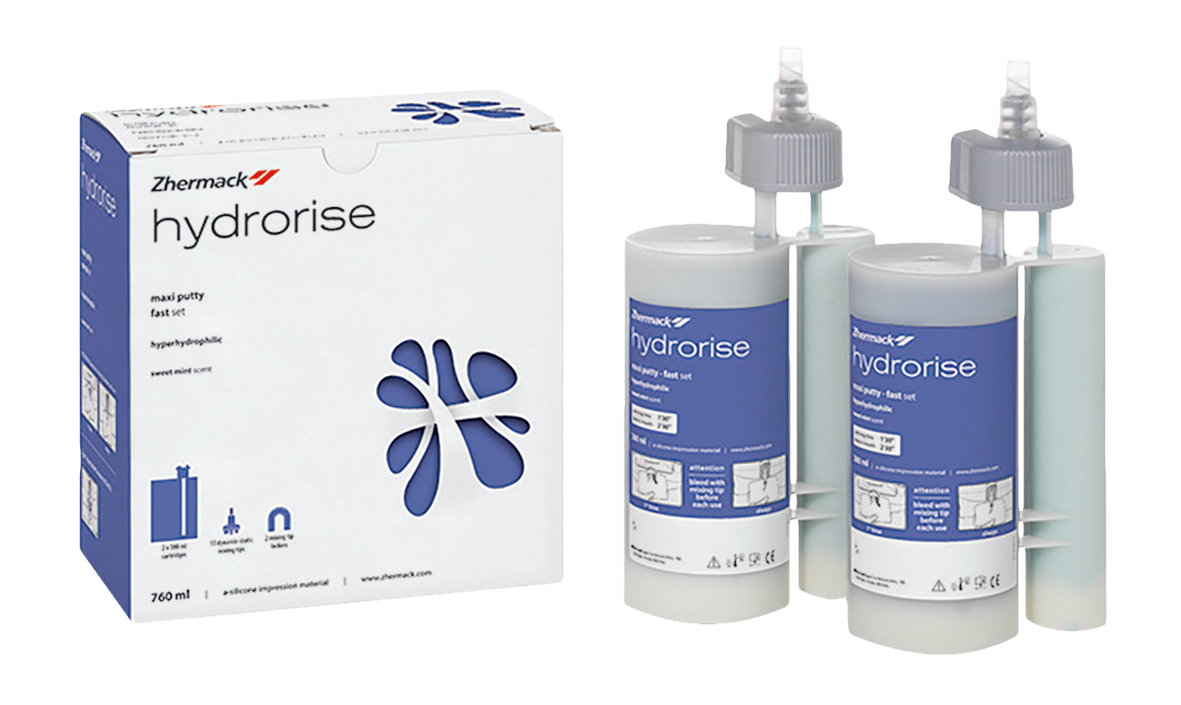 A-silicone precision impression material with the ideal viscosity for mixing machines. Enhanced prepacked hard cartridge delivery. Low-wastage mixing tips. Fits all current machines on the market. Pack includes Fast Set Putty Cartridges 380ml x 2, Dynamic-Static Mixing Tips x 15, and Mixing Tip Lockers x 2.