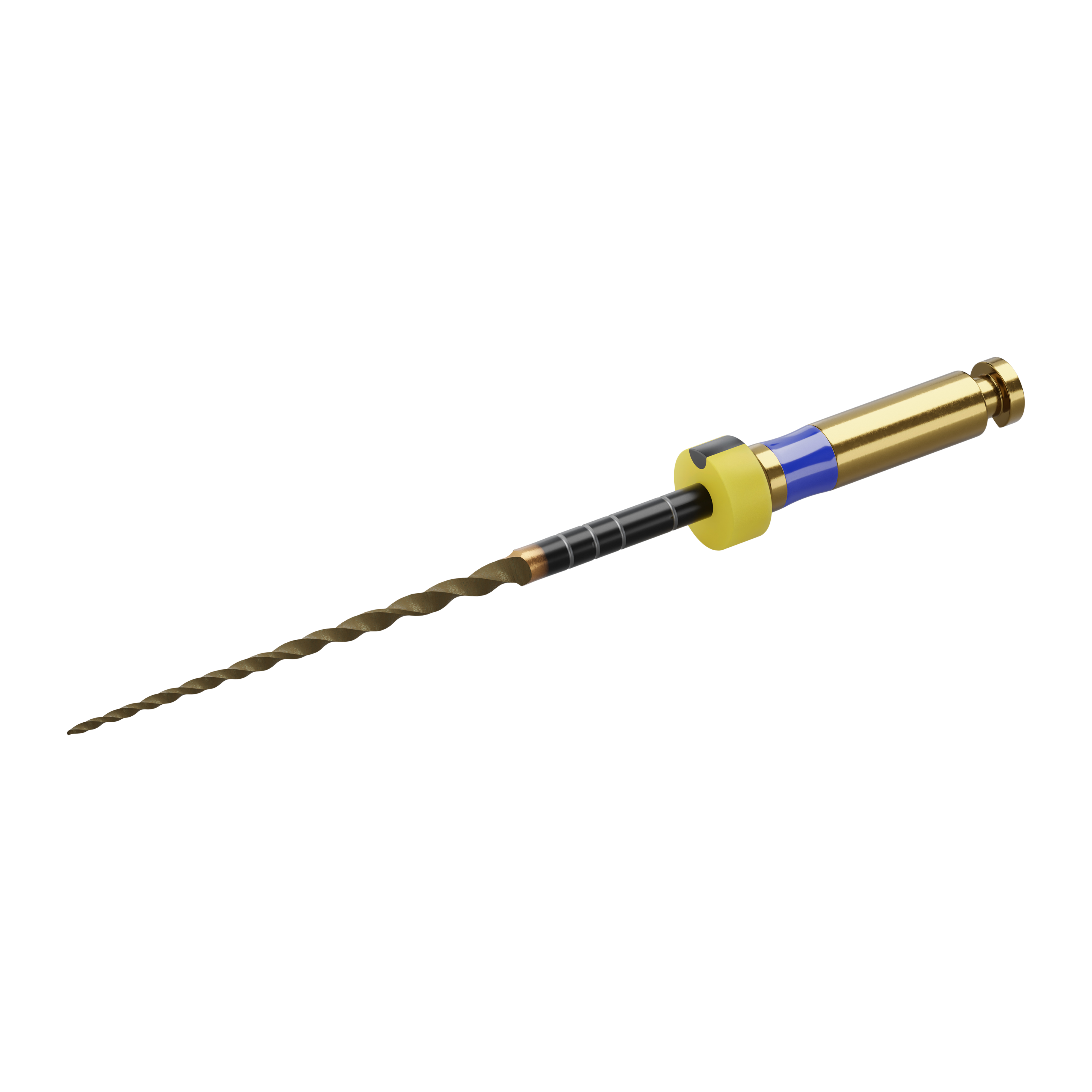 Nickel titanium file with increased flexibility. Controlled memory allowing files to be bent before use, returning to its original shape with the stability of a new file following instrument sterilisation.