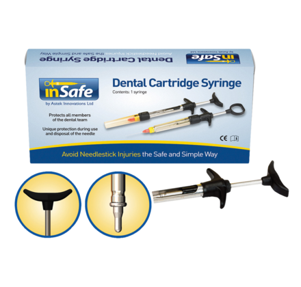 inSafe provides complete protection from the beginning of the medical procedure, through to the disposal of the needle. The specially designed syringe protects the needle at all times and its partnering sharps container removes the contaminated needle in complete safety. Needle protected by lockable sleeve Works with all needle types One handed disposal of contaminated needle Autoclavable syringe feels and weighs like a conventional syringe Economical system with low cost per use Minimal disposable components Container fits up to 150 needles Meets Directive 2010/32/EU for safe disposal of sharps.