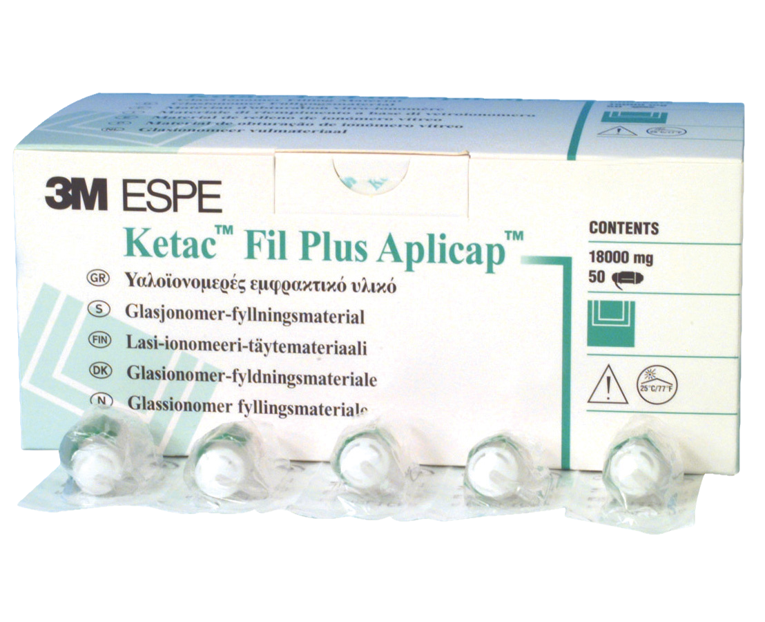 Glass ionomer filling material which offers simple handling, constant working properties and reliable quality. 8 shades to achieve natural aesthetics. Expansion coefficient, similar to tooth structure. Radiopaque. High fluoride release. Reduces risk of secondary caries due to fluoride release. Aplicap system for easy handling, consistent preparation and reliable quality.