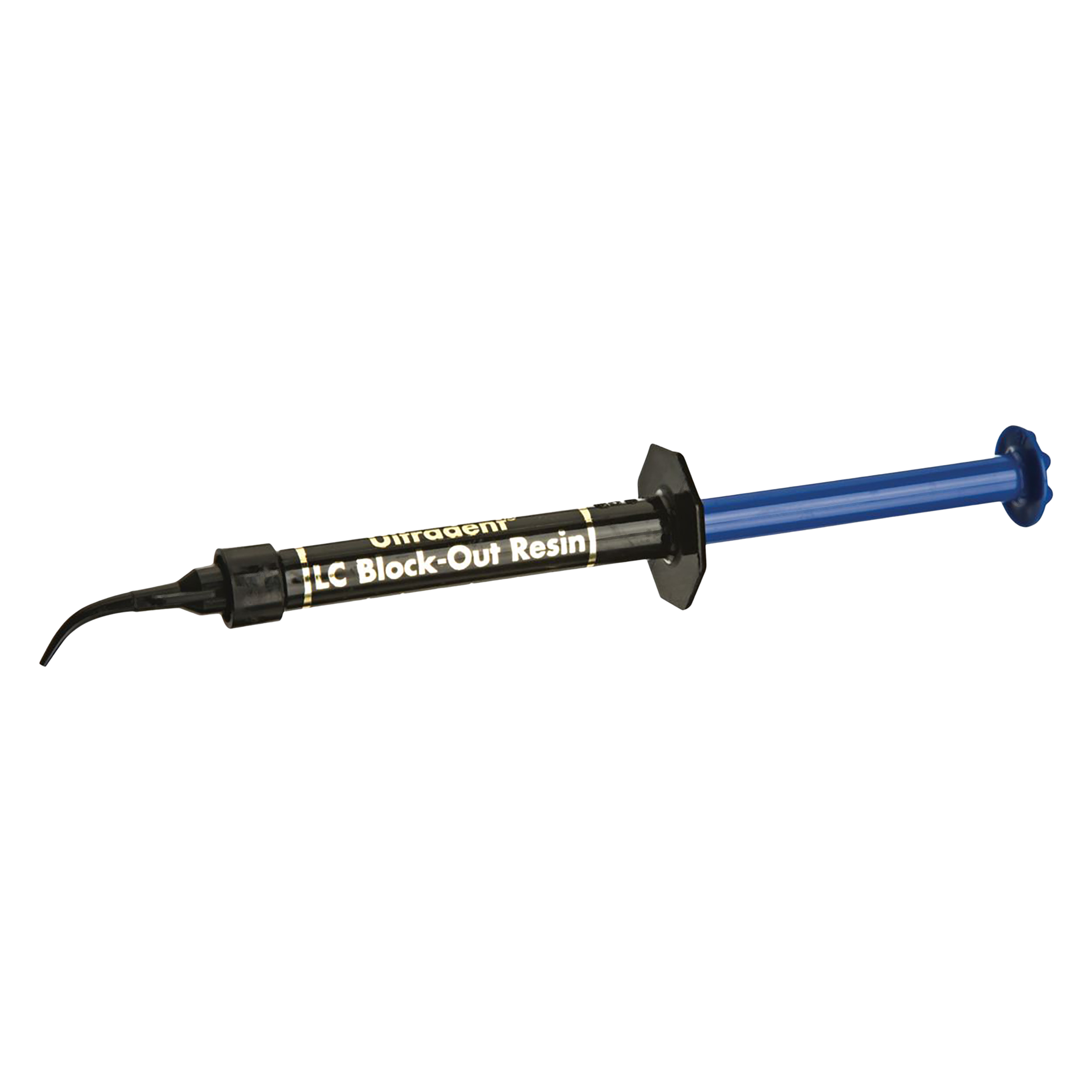 Light-cured block-out resin which provides reservoir space for bleaching and other laboratory procedures, such as model and die repairs. Low viscosity. Blue pigment. Rapidly and efficiently delivered with Black Mini Tips. Not intended for intraoral use.