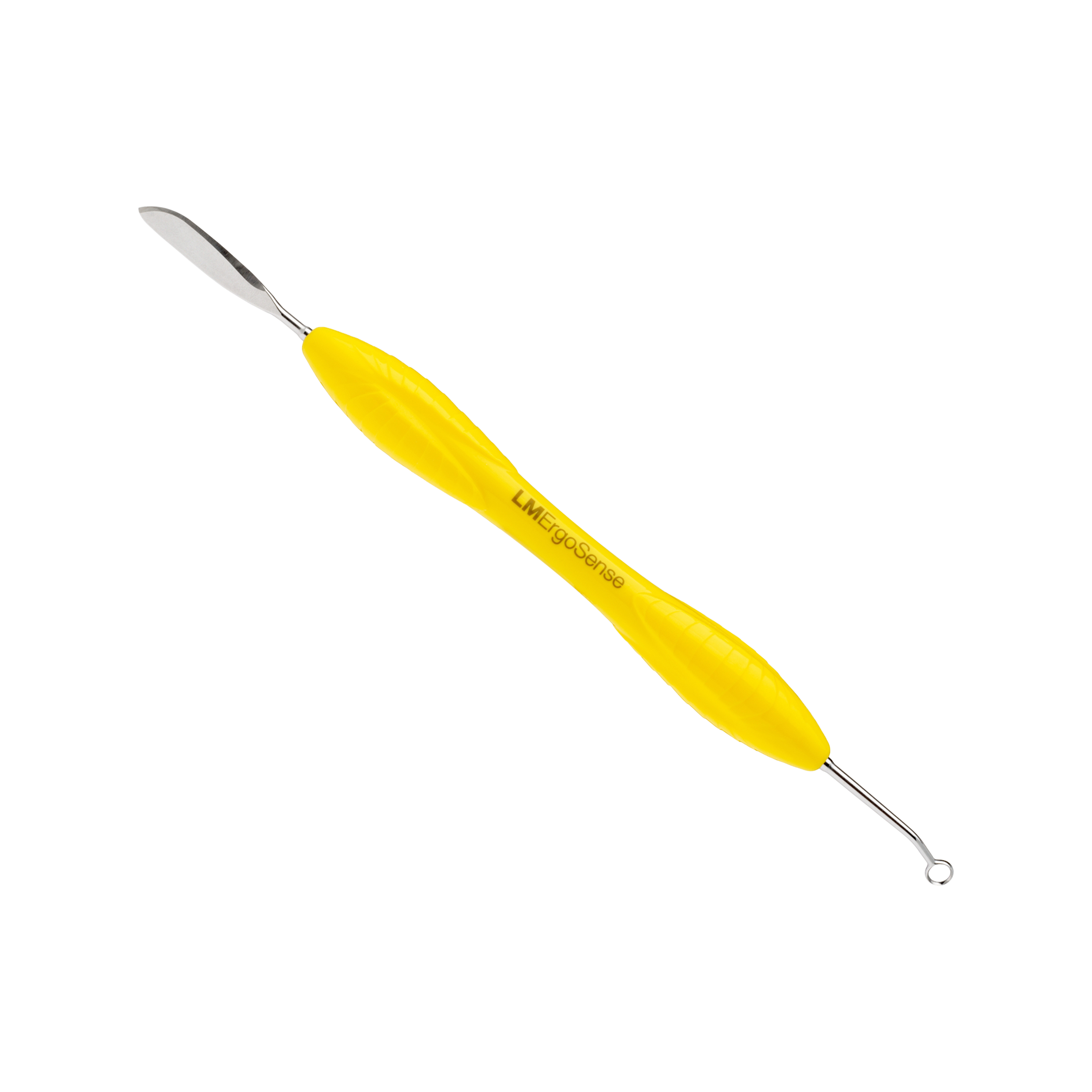 Innovative instrument specifically designed to address the challenges of cutting and trimming silicone matrices and silicone impressions with precision, control, and safety. Versatile and efficient for restorative workflows with one tip shaped like a blade, and the other designed as a ring. The bladed-tip is designed meticulously for controlled cuts without slipping or over-cutting, offers support and tactile feedback, and minimises risk of sharp edges, mistakes, and clinician injuries. The ring-shaped tip refines impressions and creates escape grooves for two-step impression techniques, allows easy removal of material while maintaining control for smooth and accurate results, and enhances final impression accuracy. Ensures precise cuts, smooth finishes, and user safety, making it a suitable tool for clinicians working with silicone in indirect restorative procedures. Non-stick coating solutions. Completely sharpen free.