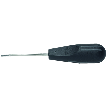 Luxator Forte Elevator with ergonomic handle and rigid tip for the elevation of roots without the risk of damaging the instrument. Cornered tip grasps dentine or root cementum for safe and controlled tooth elevation. Thin but strong with maximum tactility.