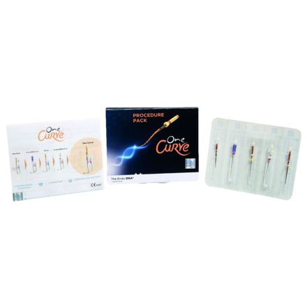 One single instrument for root canal shaping. Variable asymmetrical cross-section allows for safe, effective debris removal. Variable pitch ensures reduced screwing effect, creating a smooth procedure for the clinician. Longer instrument pitch allows greater flexibility in curved canals. Procedure Pack contains One G Instrument, Hand K-File 25mm x 2 (Size 10, Size 15), One Flare Instrument and One Curve Instrument.