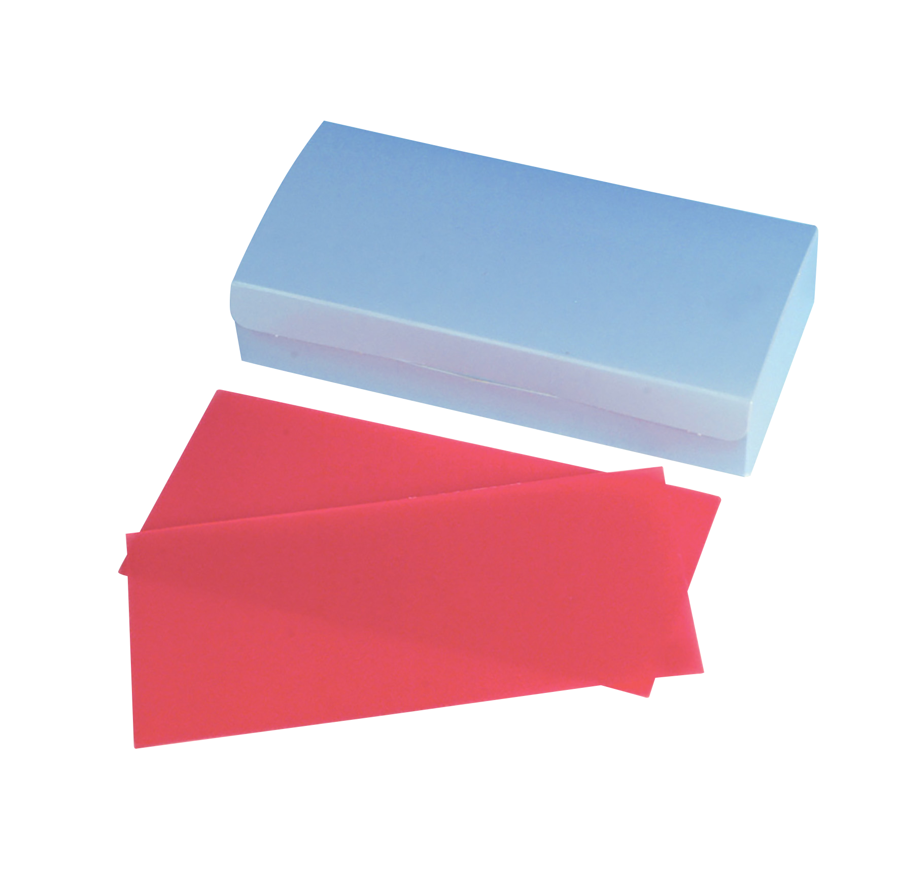Toughened pink sheet wax that is firm and non-brittle. Sheet size: 187 x 85 x 1.5mm thick. Primary softening temperature typically 41-45°C. ISO type-2 hard classification.