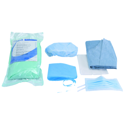 Sterile set designed for the operator, ideal for all implant dentistry, periodontology and maxillofacial surgery. Contents; Surgically Folded Expo Model Gown Large, Surgical Cap with Adjustable Strings NWF, SPIRITUS PLUS Face Mask with Strings NWF, Non-slip Shoe Covers NWF Pair, and Hand Towels Wrapped in Medical Paper x 2.