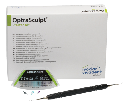 Contouring instrument for the efficient contouring of composite restorations in the posterior region. 3 attachment shapes for the professional creation of sophisticated anatomical tooth structures. Ball for the adaptation of composites, Pointed Tip for professional contouring of fissures, and Chisel for the creation of proximal marginal ridges. Optimum working angle for the posterior region. Hygienic dispenser box for easy access to attachments. Starter Kit contains Double Ended Instrument, Ball x 20, Chisel x 20 and Pointed Tip x 20.