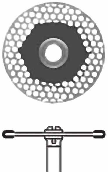 Finishing disc for controlled removal of bulk protrusions and precise contouring. Fine diamond grit. Highly flexible. Homogeneous honeycomb design for improved visibility. Quick-change system. Integrated locking device for safe use.