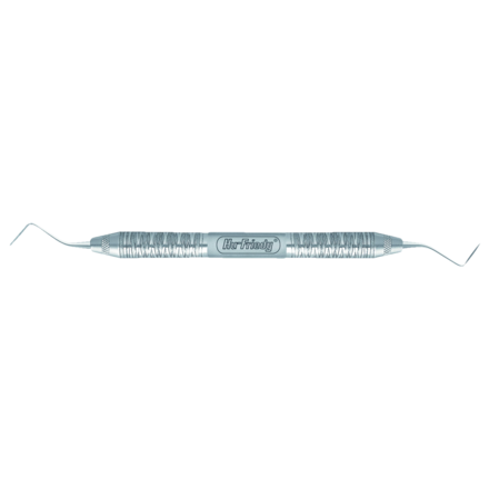 Periotome featuring thin sharp blades used to facilitate the removal of teeth with minimal damage to the surrounding alveolar bone by severing the periodontal ligament. May be used wherever an extract is indicated but are particularly important when considering the placement of a dental implant.