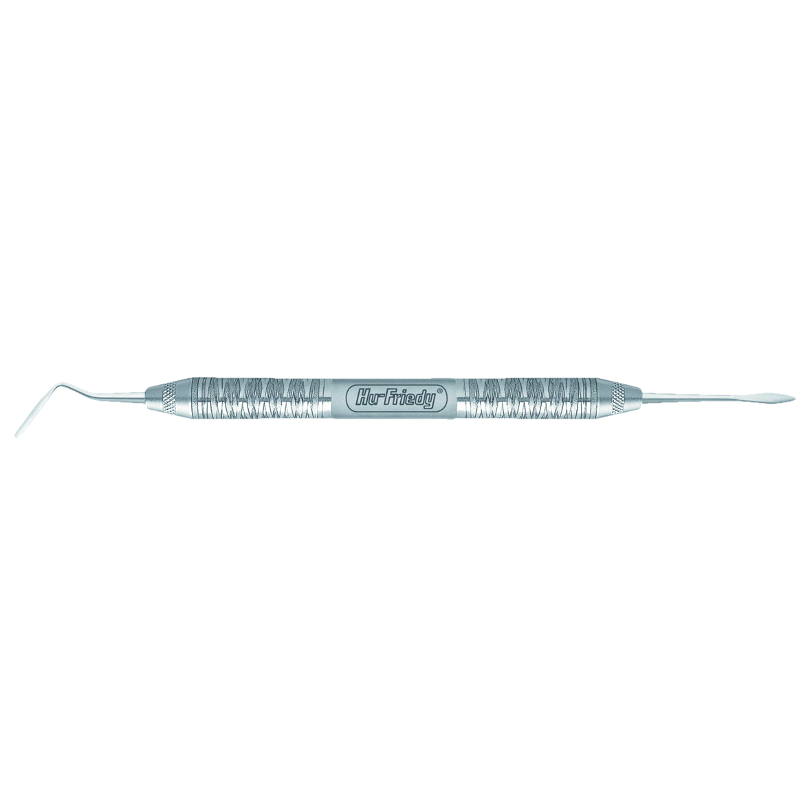 Periotome featuring thin sharp blades used to facilitate the removal of teeth with minimal damage to the surrounding alveolar bone by severing the periodontal ligament. May be used wherever an extract is indicated but are particularly important when considering the placement of a dental implant.
