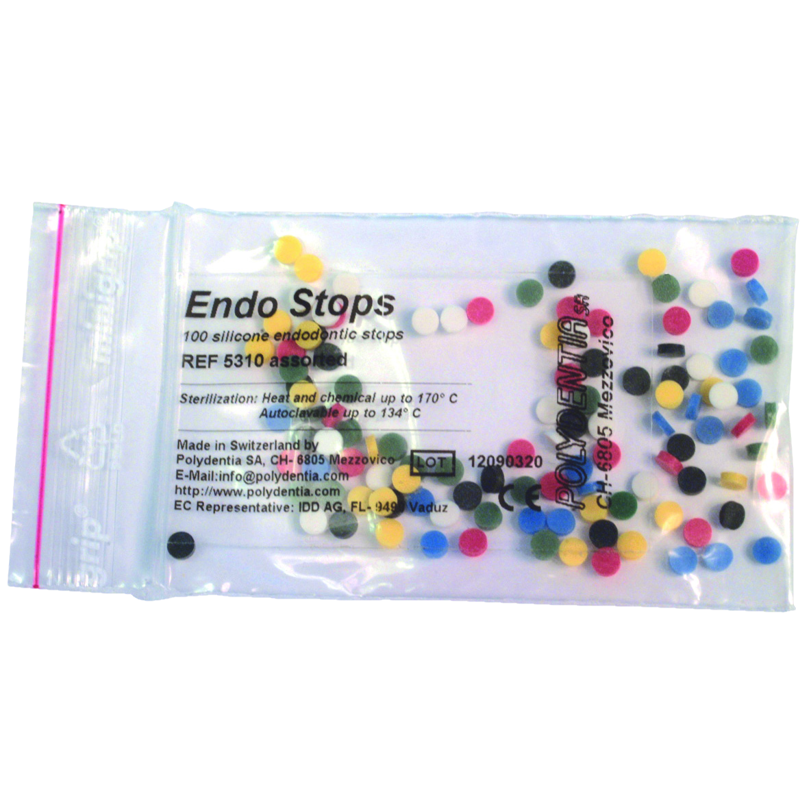 Round silicone stops; essential when working with endodontic files. Thickness of 1mm and diameter of 3.5mm.