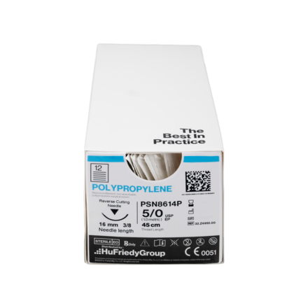 Polypropylene Sutures Blue Uncoated 45cm 5-0 3/8 Circle Reverse Cutting C-22 16.2mm PSN8614P 12pk