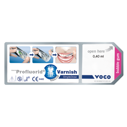 Sodium fluoride varnish to treat hypersensitive teeth and cervical areas after professional cleaning and calculus removal. Suitable on moist surfaces and sets quickly after contact with saliva. High and immediate fluoride release. Sweetened with Xylitol.