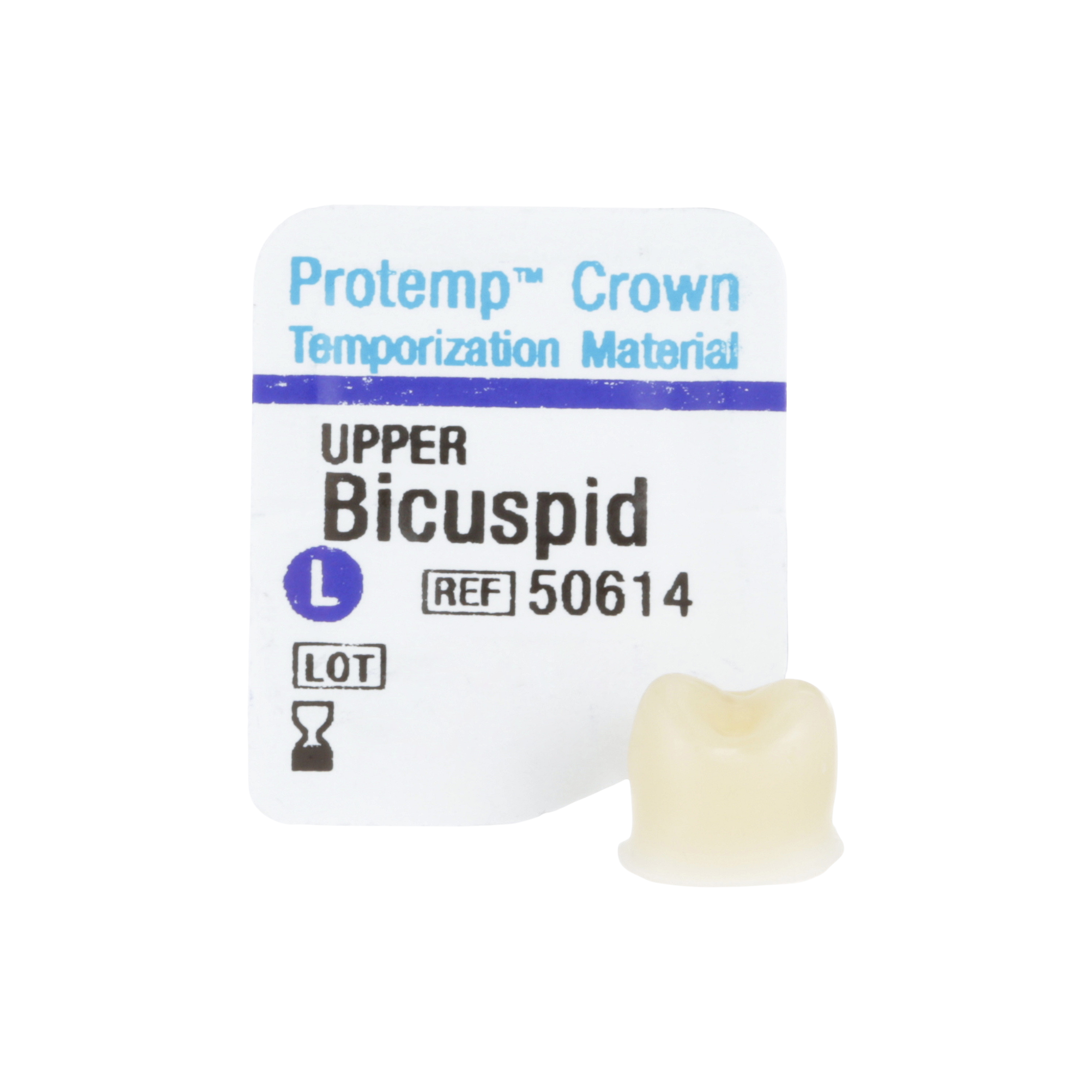 Single unit, self-supporting, malleable and light-curable composite crown. With its preformed anatomy, precision fit and excellent strength, this material is a innovative temporisation solution for single posterior units and ideal in situations where fabricating a matrix is not possible. Suggested applications include Single unit posterior temporisation, long-term temporisation, implant temporisation and digital impression-taking. Refill Kit includes Biscuspid (Premolar) Lower Temporary Crowns x 5, Instructions and Crown Size Tool.