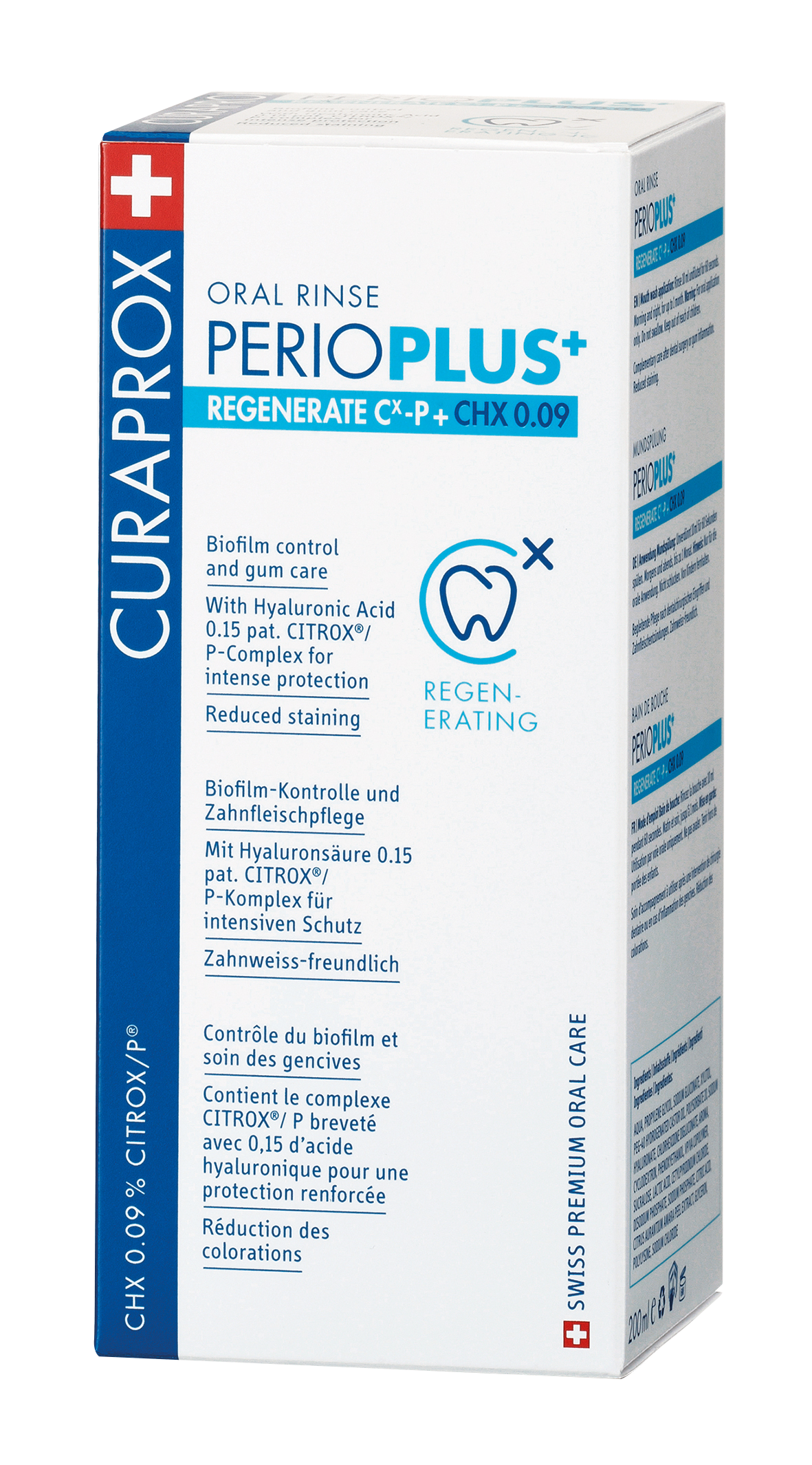 Mouthwash containing natural CITROX bioflavonoids obtained from bitter orange. Contains hyaluronic acid and chlorhexidine to prevent plaque and cavities, and to take care of the mouth before and after surgery. Alcohol-free.