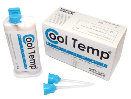 Self-curing crown and bridge material in easy-to-use automix dispensing system. No pulp or gingiva irritation. Quick to use and polish. Low curing temperature does not damage or irritate the pulp. Fast fabrication also allows less chairside time for the patient. Easily removed from the mouth. Supplied in an automix cartridge that fits the standard 1:1/2:1 dispenser. High strength and excellent aesthetics.