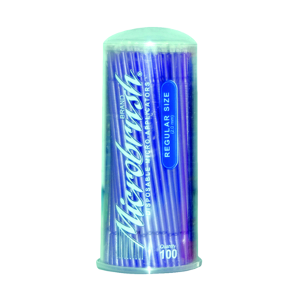 Original Microbrush applicators, flocked with non-absorbent fibres. Bendable neck, remains in the desired position and facilitates the precise introduction of liquids and gels (varnishes, liners, etchants, adhesives, etc.) in hard-to-reach areas. Also suitable for staining agents. Holds up to 1/8th of a drop of liquid without dripping. "Stay-Put Bending" technology: Applicator head remains in the desired position without spring-back. Rigid brush head for scrubbing. Does not lose fibres. All pack sizes offer hygienic removal of one applicator each. Regular head size 2mm. Purple colour