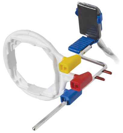 One ring and arm positioning system which reduces the number of components needed for accurately positioning radiographic media to only two pieces. Autoclavable. Lightweight construction helps patients maintain positioning. Colour coding for faster and more accurate positioning.