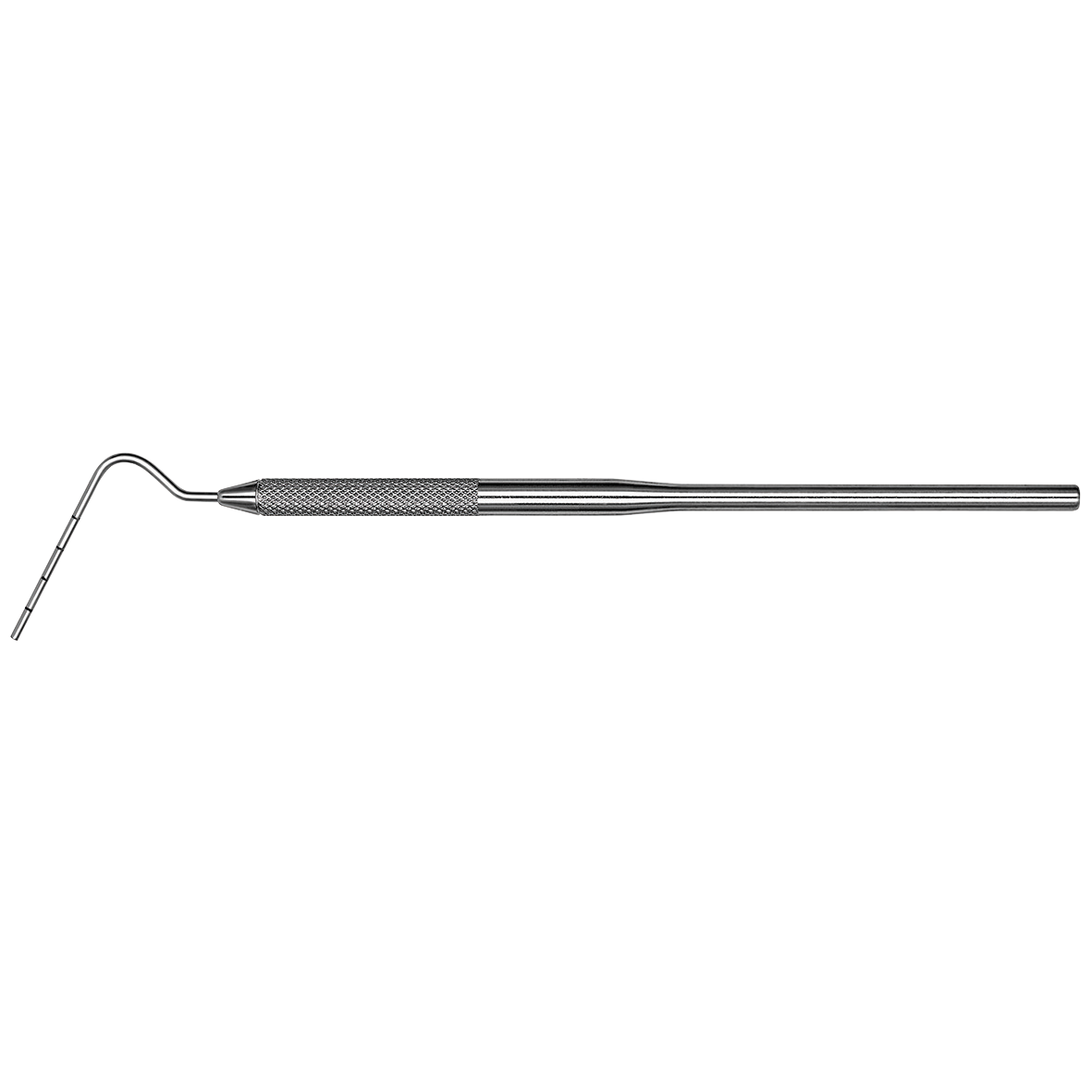 Plugger used to compact filling material during vertical condensation. Made from high quality stainless steel. Marked at 5mm intervals to assess penetration depth.
