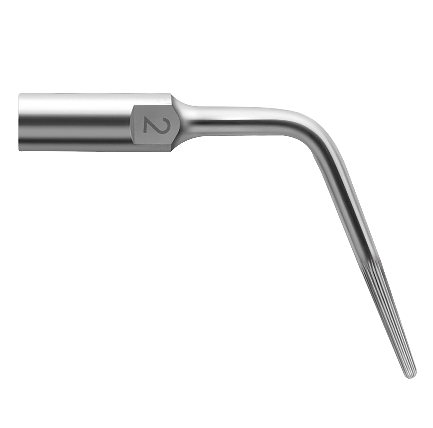 Ultrasonic inserts, specifically designed for access cavity refinement and canal orofice location. Micro milled active part means a minimised risk of diamond grit loss in the patient's mouth. Water port cools down the insert and avoids overheating of the threaded tooth. This is particularly important when removing metal posts which usually require high energy. The intermittent use of the irrigation enables the clinician to alternate between dry precision work and debris evacuation. Insert 1 application: access cavity wall refinement. Insert 2 application: MB2 canal scouter (2nd canal mesio buccal root). Insert 3 application: canal openings scouter. Insert 4 application: metal post removal. Insert 5 application: reveals the orginal pulp chamber floor anatomy. The inserts have been designed to be exclusively used with a Piezo ultrasonic generator.