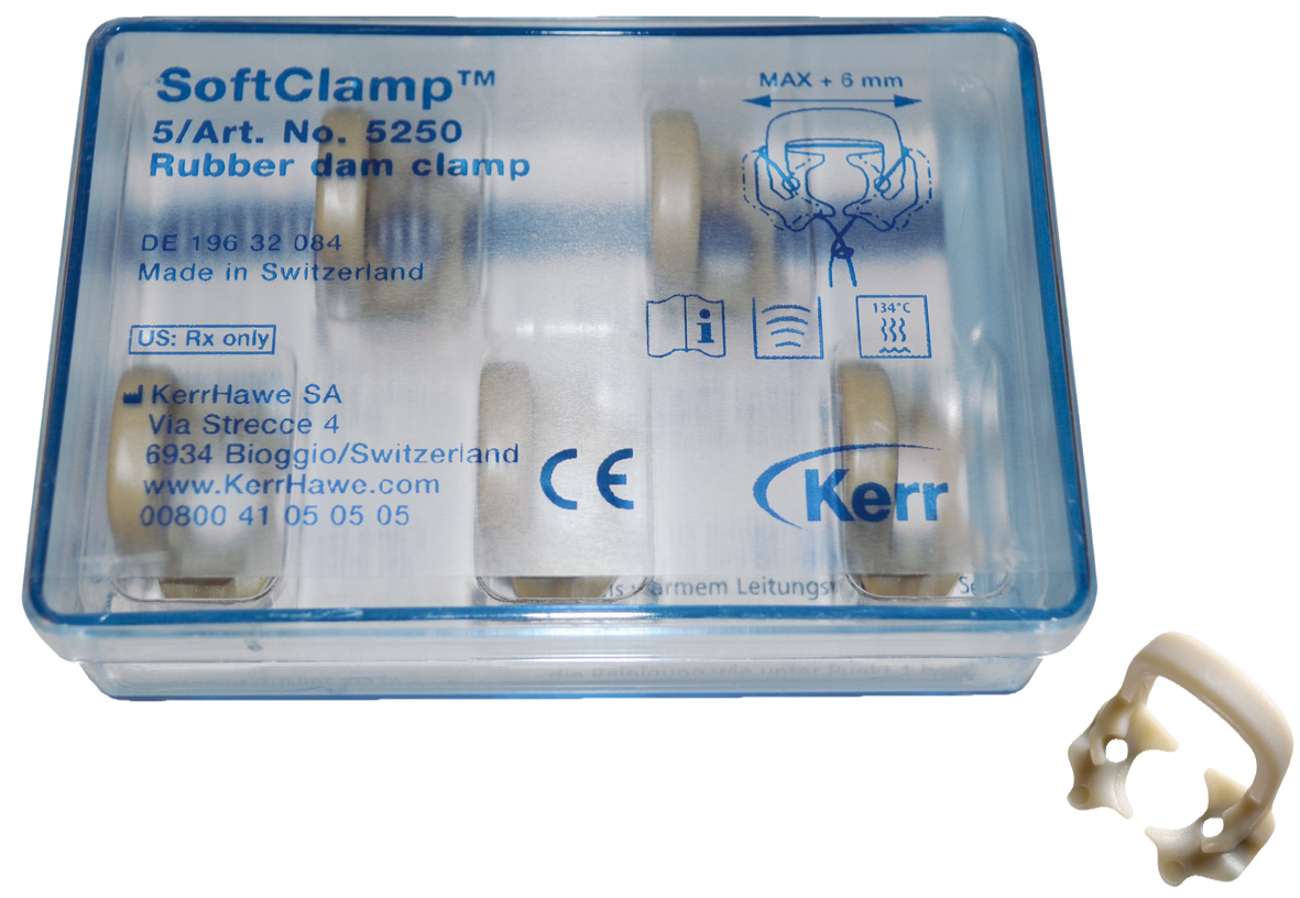 Universal rubber dam clamp The gentle alternative to metal clamps Autoclavable 134?C (minutes) Universal for molar teeth General Kit: Universal Winged Molar Clamp x 5
