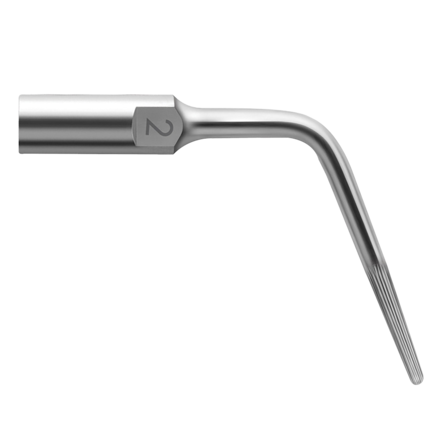 Ultrasonic inserts, specifically designed for access cavity refinement and canal orofice location. Micro milled active part means a minimised risk of diamond grit loss in the patient's mouth. Water port cools down the insert and avoids overheating of the threaded tooth. This is particularly important when removing metal posts which usually require high energy. The intermittent use of the irrigation enables the clinician to alternate between dry precision work and debris evacuation. Insert 1 application: access cavity wall refinement. Insert 2 application: MB2 canal scouter (2nd canal mesio buccal root). Insert 3 application: canal openings scouter. Insert 4 application: metal post removal. Insert 5 application: reveals the orginal pulp chamber floor anatomy. The inserts have been designed to be exclusively used with a Piezo ultrasonic generator.