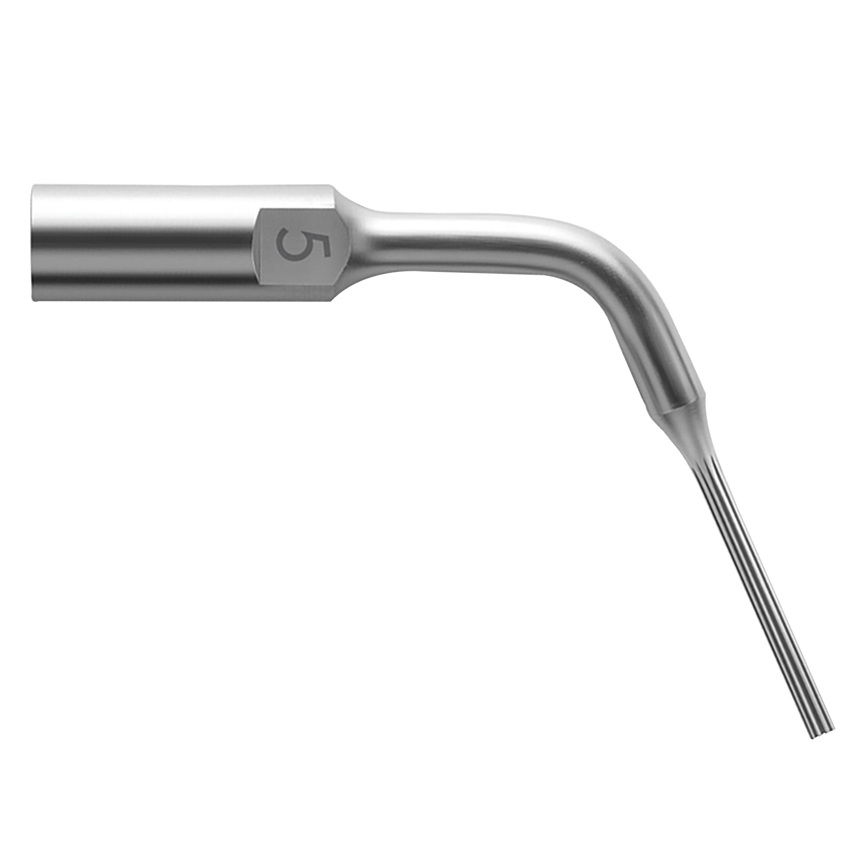 Ultrasonic inserts, specifically designed for access cavity refinement and canal orofice location. Micro milled active part means a minimised risk of diamond grit loss in the patient's mouth. Water port cools down the insert and avoids overheating of the threaded tooth. This is particularly important when removing metal posts which usually require high energy. The intermittent use of the irrigation enables the clinician to alternate between dry precision work and debris evacuation. Insert 1 application: access cavity wall refinement. Insert 2 application: MB2 canal scouter (2nd canal mesio buccal root). Insert 3 application: canal openings scouter. Insert 4 application: metal post removal. Insert 5 application: reveals the orginal pulp chamber floor anatomy. The inserts have been designed to be exclusively used with a Piezo ultrasonic generator.