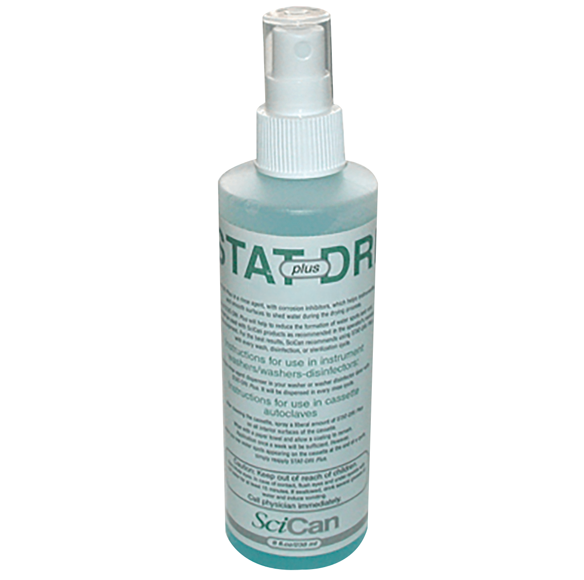 Quick drying spray for Statim cassette lid. The interior surface of the cassette should be cleaned at least once a week with a mild, chlorine-free dishwashing soap. To promote quick drying, SciCan recommend spraying the cassette lid and tray with Statdri after each cleaning.