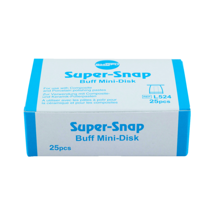 Mini discs featuring a synthetic felt polishing cloth on the outer surface which retains expensive polishing pastes with minimum splatter or waste during use. For composites, porcelain and gold restorations. No metal centres or exposed mandrels, avoiding discolouration of composites or ridge formation. Produces a lustrous shine on porcelain and composites, with the flexible disks adapting to the tooths natural contours. The best results can be achieved in combination with SHOFU polishing pastes.