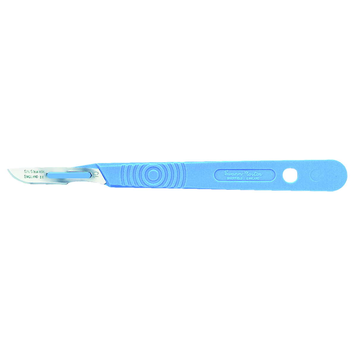 Polystyrene handle with stainless steel blade. Pack of 10 individually wrapped. Sterile.