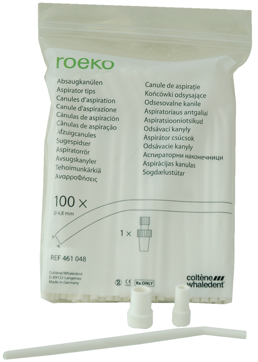Single-use plastic aspirator tips ideal for moisture evacuation during all standard procedures where sterility is not a requirement. Supplied with an autoclavable double adaptor to fit on all equipment. 4.8mm. Non-sterile.