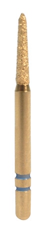 Diamond bur made from virgin diamond crystals, which have more corners and angles than synthetics, for superior abrasion. Nickel chrome alloy chemically adheres to each individual crystal to extend working life of the tool. Prevents stripping and peeling. Provides smooth surface finish and eliminates the need for second pass over a crown with a finer grit diamond. Reduces prep time and cost.