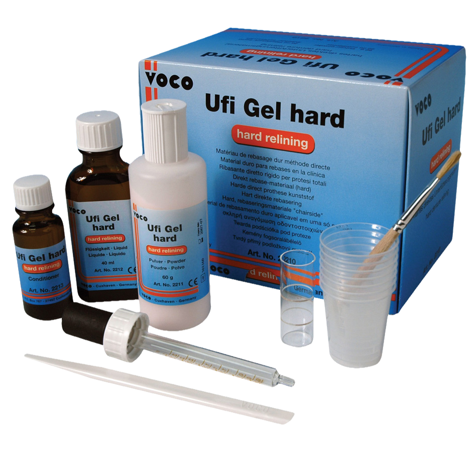 Material formulated for long-term hard relines of partial and full dentures. Intro Kit includes Powder 60g, Liquid 40ml, Conditioner 20ml and Accessories.