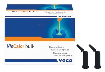 Thermoviscous bulk fill composite. Heating of the material makes it flowable for the application and then sculptable immediately afterwards (thermoviscous technology). Optimal flowing to margins and undercut regions to minimise the risk of marginal gaps. 4mm bulk fill without covering layers. Bubble-free application. One universal and three aesthetic shades. Slender cannula is ideal for hard-to-reach areas.