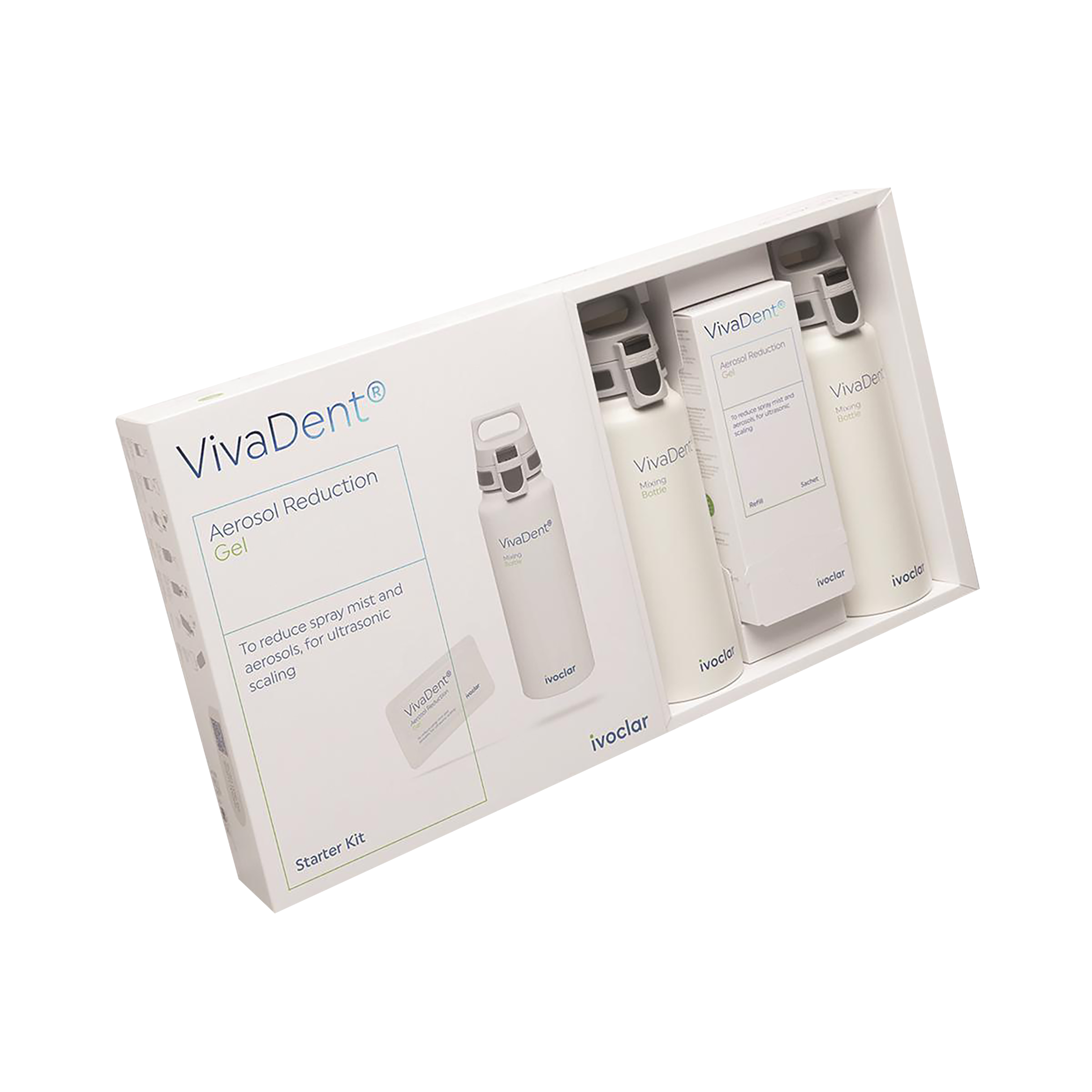 Water-soluble gel that reduces spray mist and aerosols that are produced by ultrasonc scalers. Better visibility of the treatment field during treatment with the ultrasonic scaler, with dental mirrors remaining mostly unaffected from water spray. More protection as the likelihood of spreading airborne diseases and cross-contamination is effectively reduced by reducing the spray mist. Provides a more comfortable experience for patients due to less splatter on the face: make-up is nearly unaffected and glasses stay clean. Easy-to-use mix-in solution for all ultrasonic scalers with an external coolant tank.