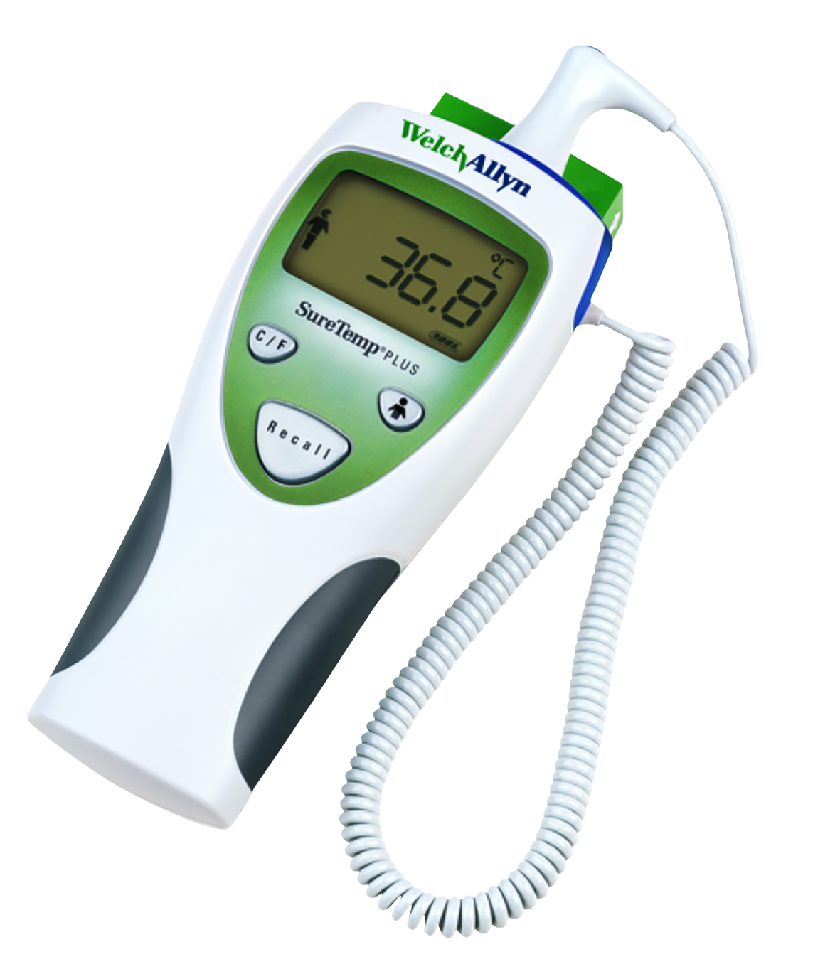 Electronic thermometer to help improve staff productivity and patient safety. Fast capturing approximately 4-6 second oral, 10-13 second rectal or paediatric axillary and 12-15 second adult axillary temperatures. Delivers accurate, repeatable readings on patients of all age groups. Removable, interchangeable, oral, axillary, rectal probes and probe wells are designed to reduce the risk of cross-contamination, for staff satisfaction and patient safety. Large LCD displays temperatures in Fahrenheit or Celsius. Convenient storage for 25 probe covers. Last temperature recall button. Takes approximately 6,000 readings on 3 AA batteries.