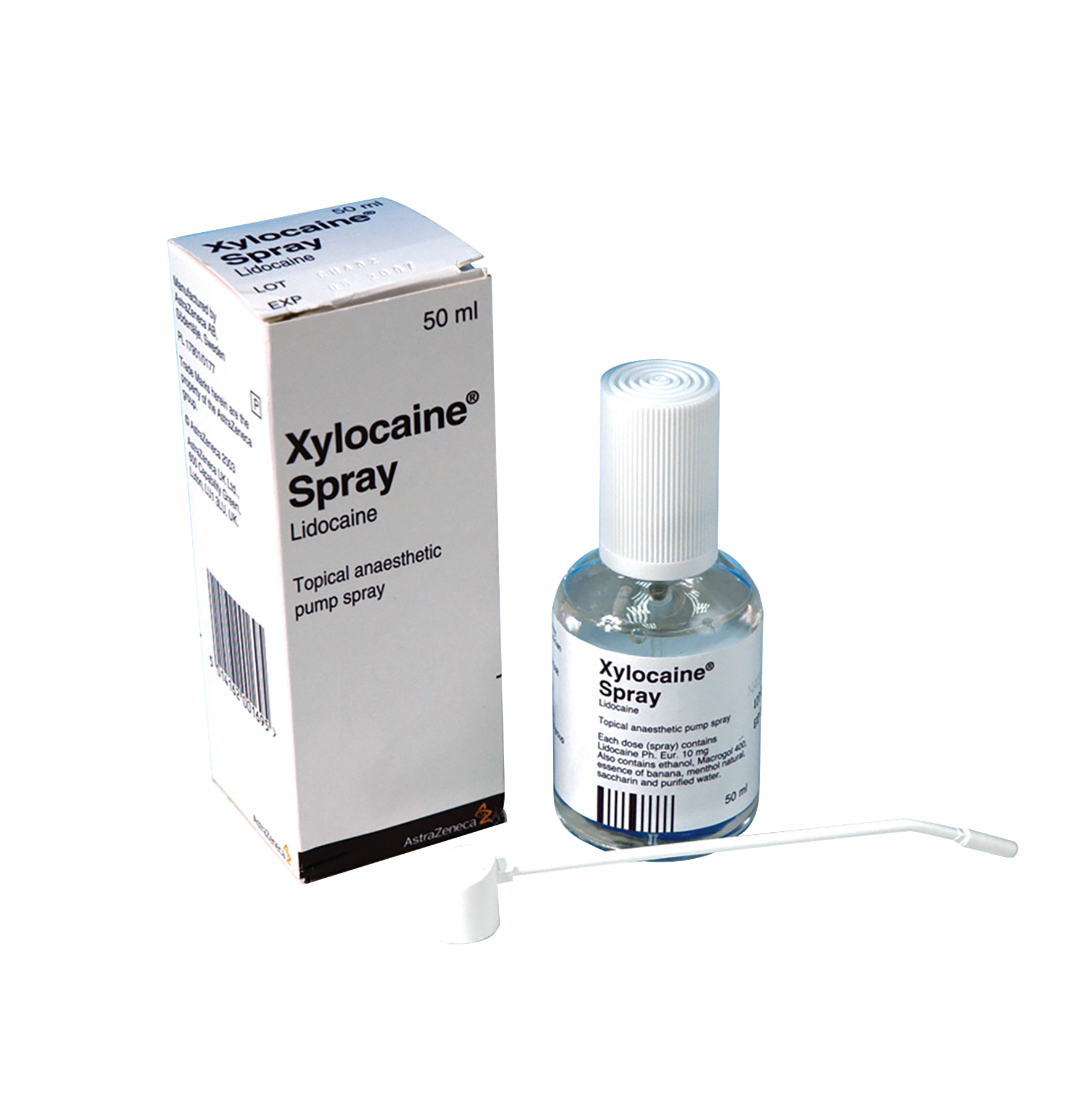 Topical spray anaesthetic. Each dose contains lidocaine Ph. Eur./10 mg. Also contains ethanol, polyethylene glycol 400, essence of banana, menthol, natural saccharin and purified water. Not licensed for sale in the Republic of Ireland.