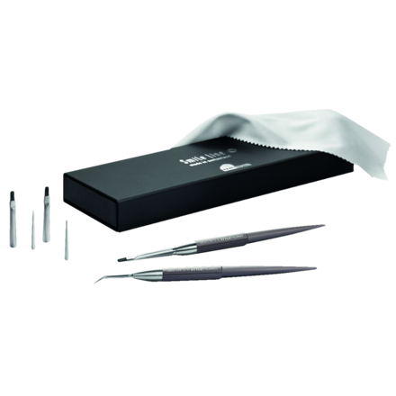 Brushes developed with StyleItaliano, intended for composite staining. Black synthetic fibres allow for extreme precision with the best contrast. Superior working quality compared to standard brushes. Brush tips held by friction on the handle. Posterior brush tip can easily be bent by the user for a better access to the posterior areas. Set includes Compo-Brush x 2 (#000 Posterior, Flat Anterior) and Brush Tips x 4 (#000 Posterior, Flat Anterior).