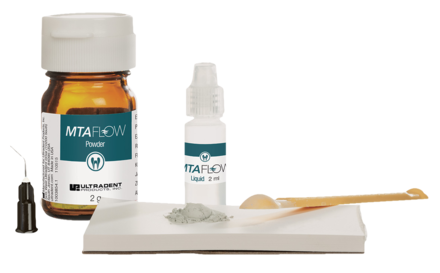 Bioactive powder and liquid/gel system consisting of fine, radiopaque, inorganic powder of tricalcium and dicalcium silicate, which sets with a water-based gel. Designed to mix quickly, smoothly and easily into the right consistency for a variety of procedures. Mixing ratio can be adapted based on the procedure: thick consistency is suitable for pulp capping, pulp chamber perforation and pulpotomy; thin consistency is used for resorption, apexification and apical plugs; putty consistancy is used for root end fillings. Small particle size allows for a smooth and easy dispensation due to the ultra-fine grained powder and proprietary gel medium. Formulation is resistant to washout, ensuring that the mixture stays where it is placed. Forms a layer of hydroxyapatite when set, which induces a healing reaction. Includes; Powder 2g, Gel 2ml, Measuring Spoon, Mixing Pad, Micro Tips 20G x 20, Skini Syringe x 10, Luer Lock Caps x 10, Technique Card and IFU